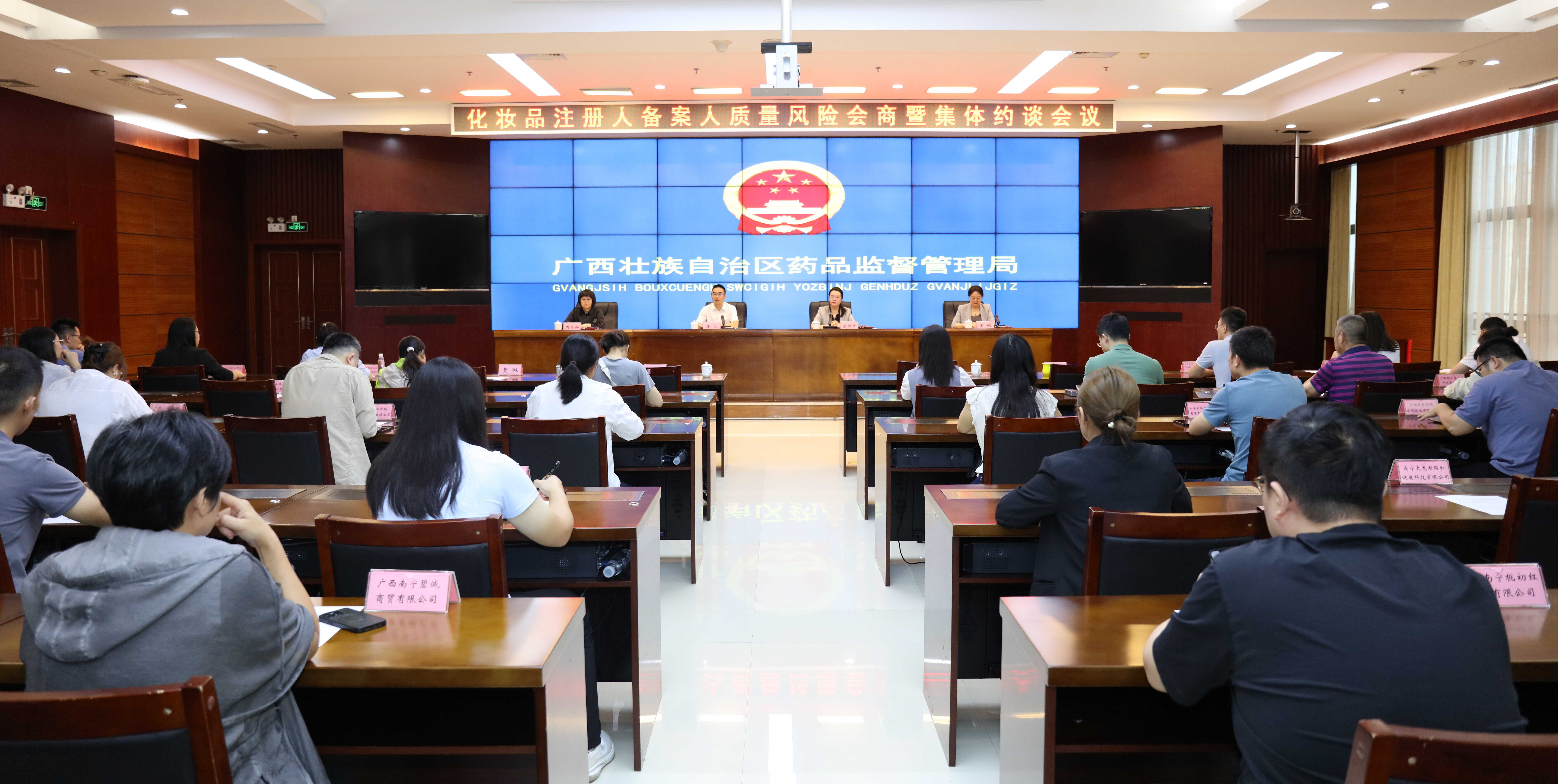 近期, 沙巴体育召开南宁辖区化妆品注册人备案人质量风险会商暨集体约谈会,对当前监管安全风险进行深入分析,宣贯和解读化妆品法律法规要求,并对南宁市化妆品注册人备案人进行集体约谈。