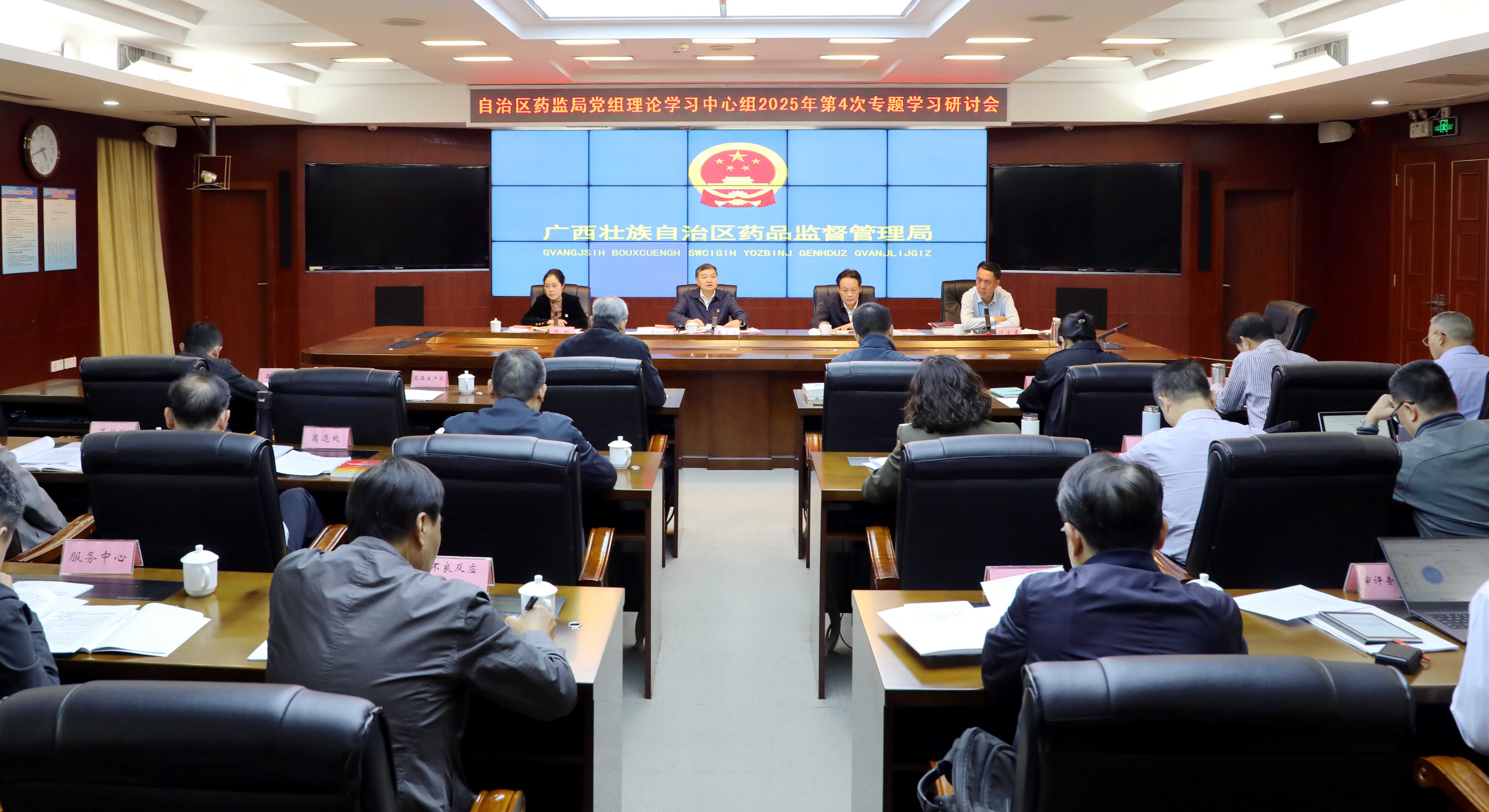 11月25日,广西药监局党组开展理论学习中心组2025年第4次专题学习,深入学习贯彻党的二十届四中全会精神和《习近平谈治国理政》第五卷,结合药品监管工作实际开展集中研讨。局党组书记、局长李勇强主持并讲话,局党组成员、副局长韦广辉、万秋、沈宏睿参加研讨。