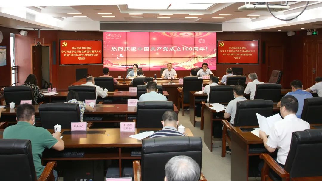 7月1日上午,庆祝中国共产党成立100周年大会结束后, 沙巴体育迅速召开党组中心组扩大会议,专题学习习近平总书记在大会上的重要讲话精神,强调要把习近平总书记重要讲话精神学习好、宣传好、贯彻好,在全区药品监管部门掀起学习热潮,充分展现新时代新征程中广西药监人的新担当和新作为。局党组书记、局长黄琛主持会议并发言。局党组成员、副局长韦广辉、万秋出席会议。