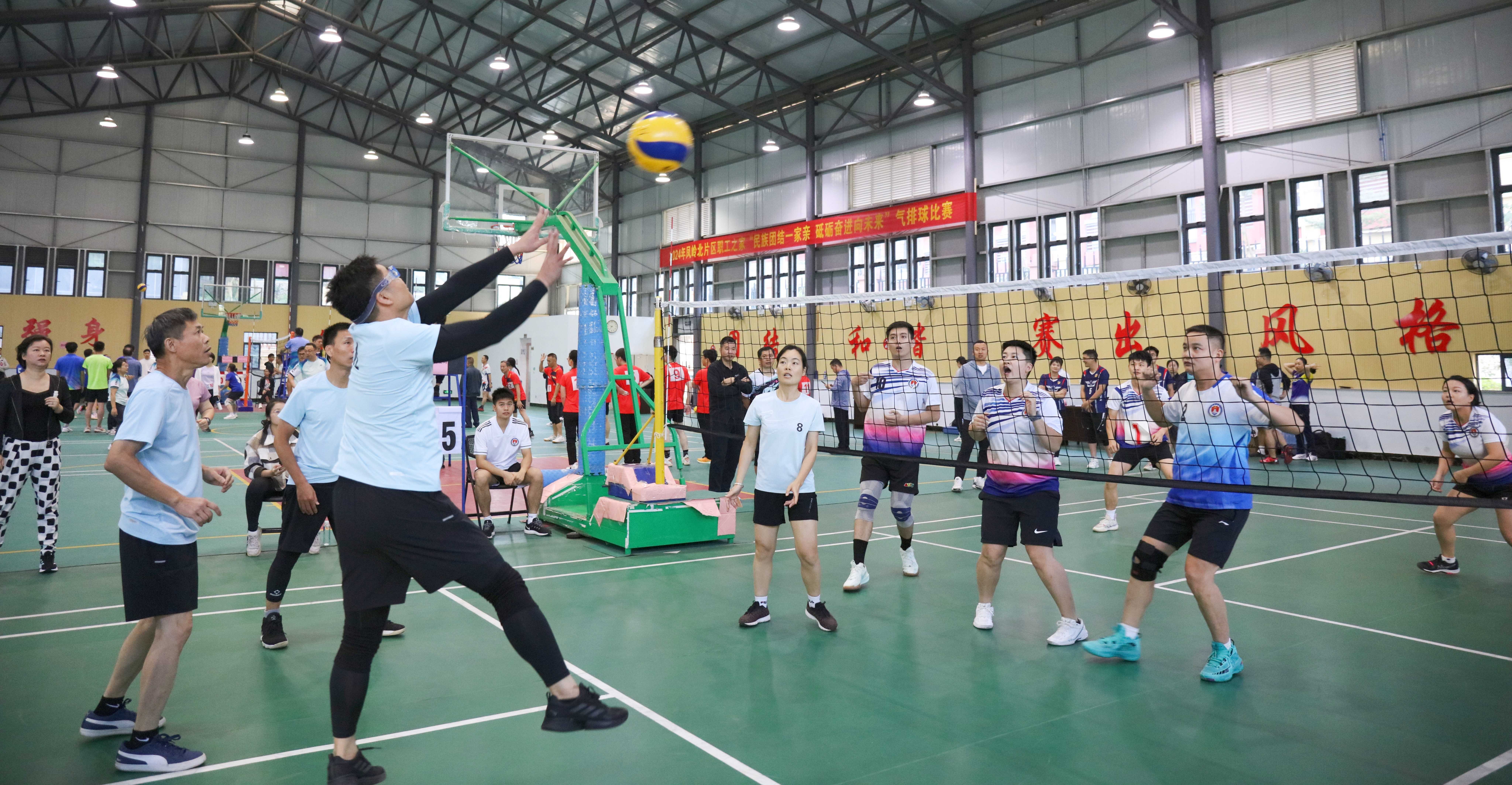 来自凤岭北片区职工之家成员单位的自治区党委网信办、自治区专用通信局、自治区检察院、南宁铁路局、自治区自然资源厅、广西贸促会、自治区林业局、 沙巴体育、南宁海关、国家统计局广西调查总队等部门组织的14支代表队参加本次角逐。参赛队伍在赛场上挥洒汗水,展现出高昂的斗志和团队协作精神。选手们在场上你来我往,精彩的扣球和强势攻防赢得了观众的阵阵喝彩。各队伍间相互鼓励,展现出良好的体育精神和团队合作意识。