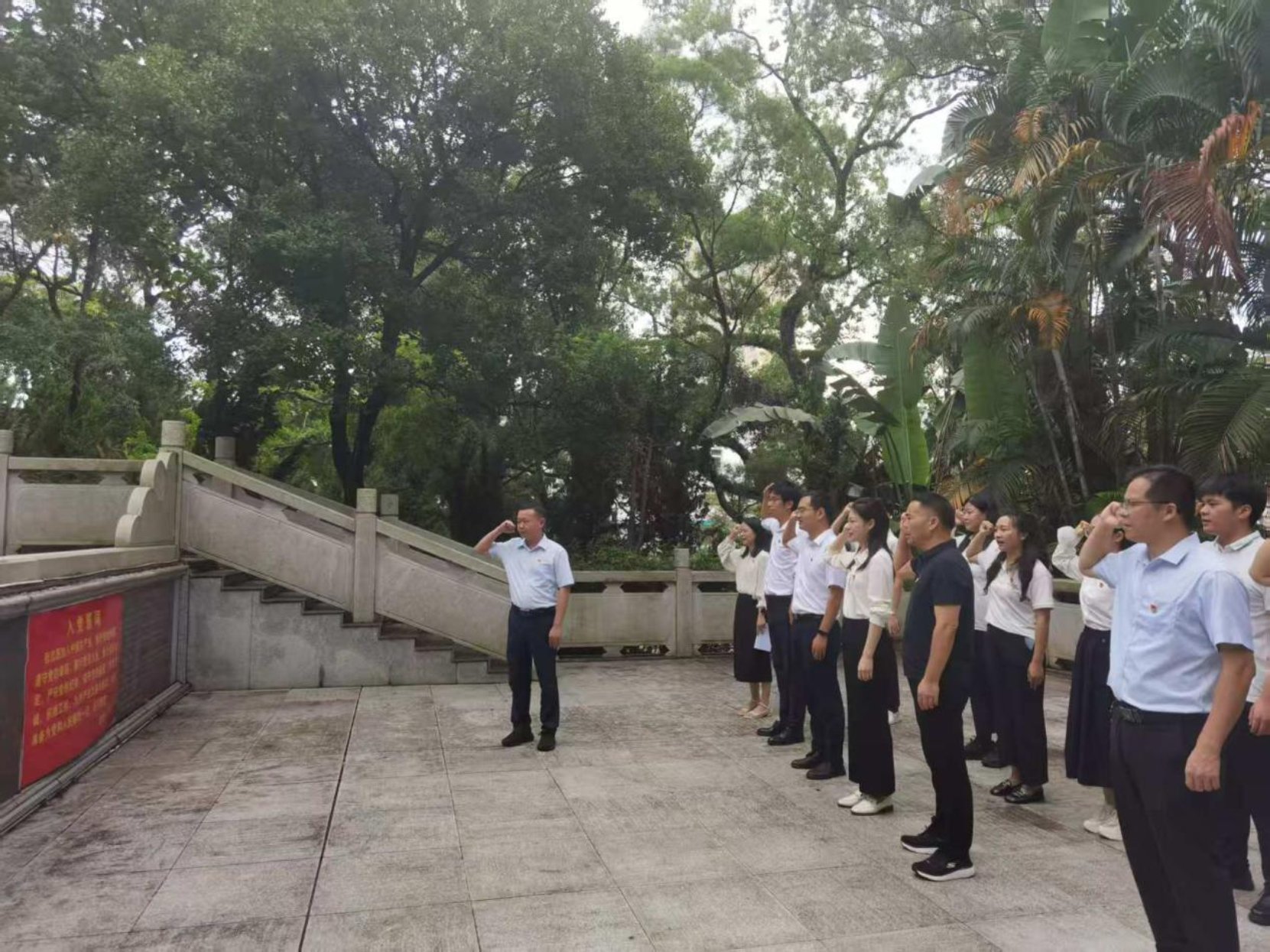 当天上午,党员们前往东兴市先参观了中越边境零界碑,邀请竹山村党支部书记讲述了零界碑的历史。随后来到中越人民革命烈士纪念碑前,全体党员重温入党誓词,并敬献花圈,缅怀革命先烈。大家还参观了钟竹筠烈士纪念馆和侨批馆,接受革命传统和爱国主义教育。