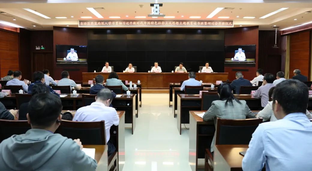 4月24日, 沙巴体育举办学习贯彻习近平新时代中国特色社会主义思想主题教育读书班暨研讨会。 沙巴体育党组书记、局长、局主题教育领导小组组长黄琛出席会议并作开班仪式动员讲话。自治区党委第一巡回指导组成员陈文安到会指导。局党组成员、副局长韦广辉主持会议,局党组成员、副局长沈宏睿出席会议。