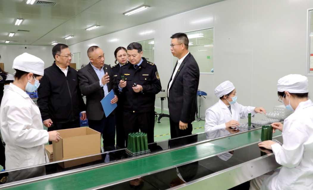 李勇强一行先后到广西维威制药有限公司检查调研企业药品研发生产及销售情况,在国药控股广西有限公司检查调研企业药品储存、物流配送及经营管理情况,在广西和桂集团有限公司检查调研化妆品生产经营情况。期间深入企业生产加工车间检查安全生产状况,进仓储库房,冷链库查看药品储存配送和供应保障能力,听取企业负责人情况介绍,了解企业未来发展规划,存在的困难和问题,需要监管部门支持和改进建议。督促企业履行安全主体责任,加强质量管理,确保药品安全有效。鼓励企业加大研发能力,提高生产规模,拓展海内外市场,为推动广西医药经济持续高质量发展作出更大的贡献。